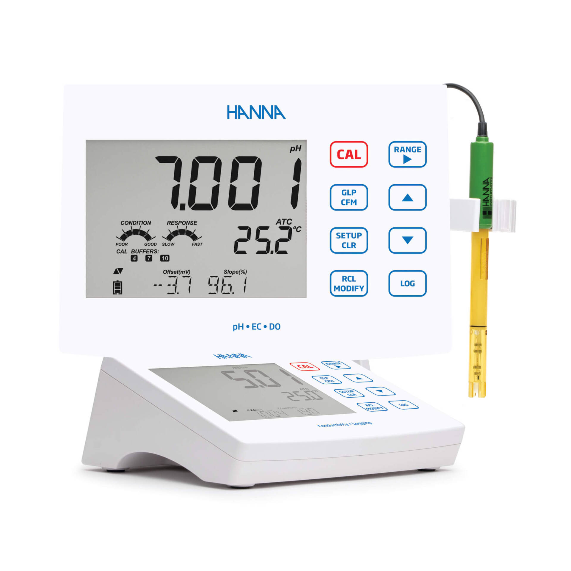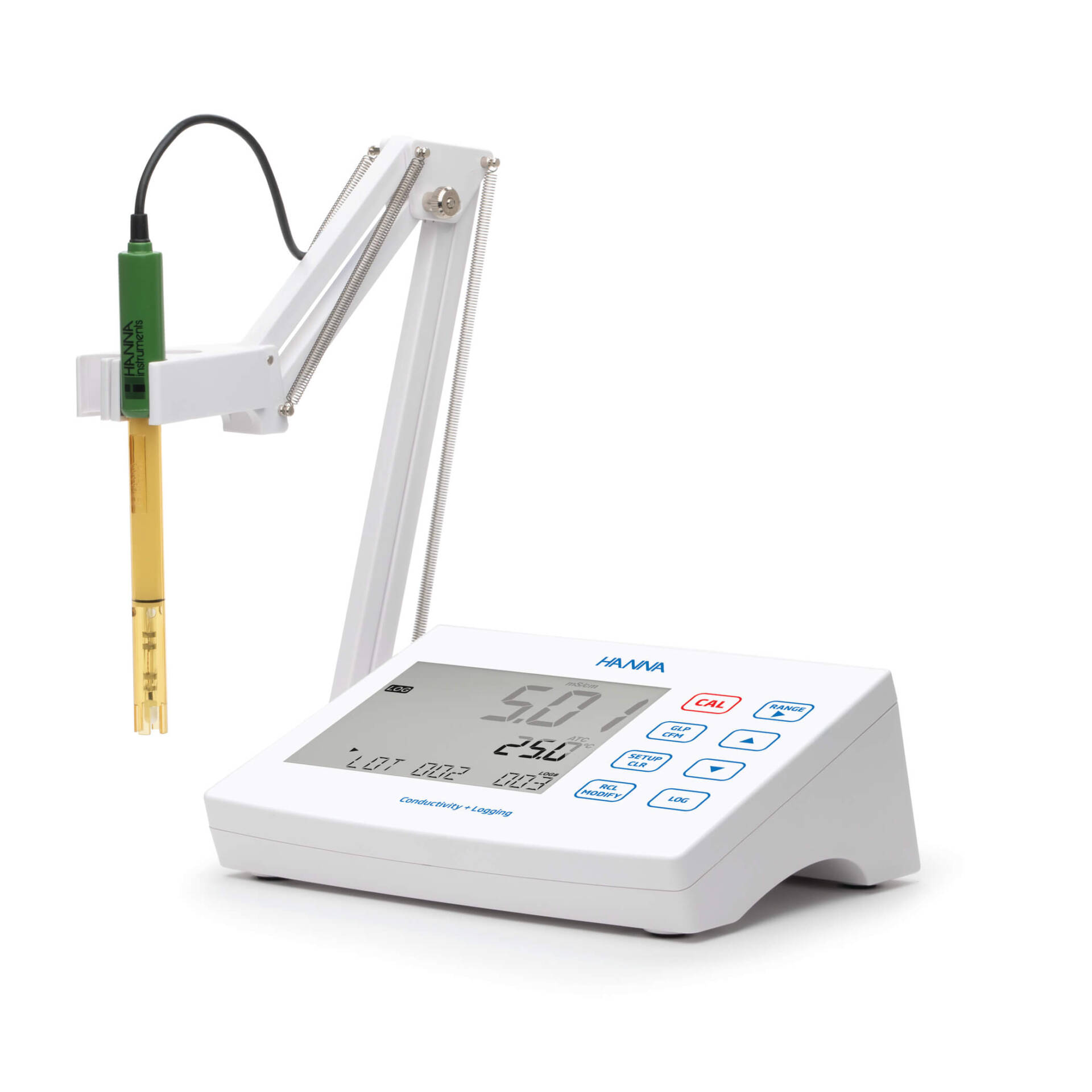 El HI2631 permite realizar mediciones rápidas y precisas utilizando el electrodo de conductividad digital HI763100 de Hanna Instruments® con sensor de temperatura integrado.